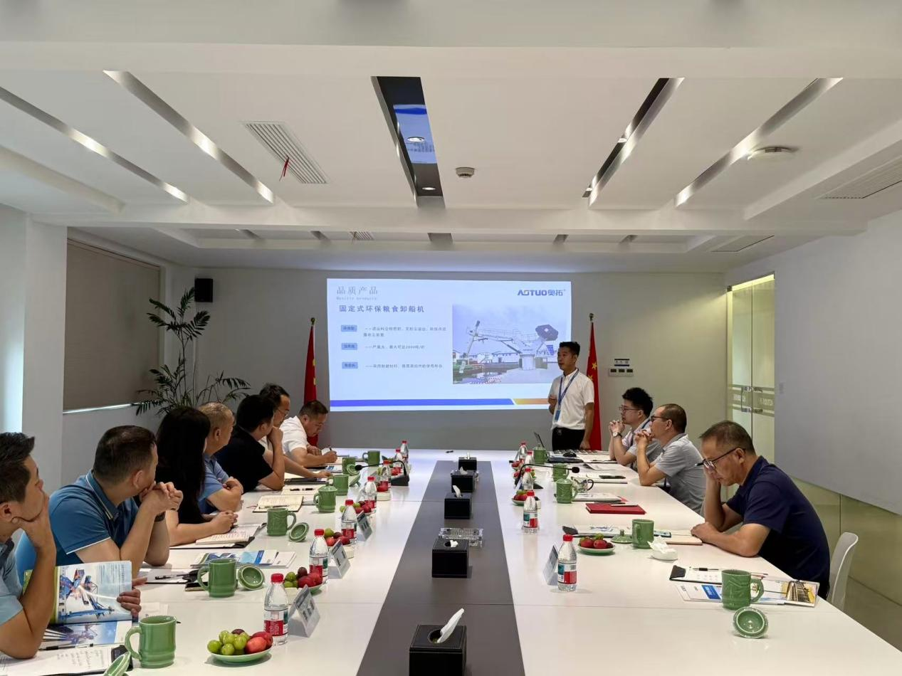 Recentemente, Yang Libin, membro do Comitê do Partido e Diretor Geral Adjunto do Grupo Portuário e de Navegação de Guizhou, liderou uma delegação para uma inspeção aprofundada e intercâmbio técnico. Jigui Bo, Presidente e Presidente da AOTUO, juntamente com a equipe técnica principal, acolheu a delegação durante a visita. As duas partes envolveram-se em extensas discussões sobre temas como equipamentos de movimentação de carga a granel, processos, digitalização portuária e soluções logísticas inteligentes.